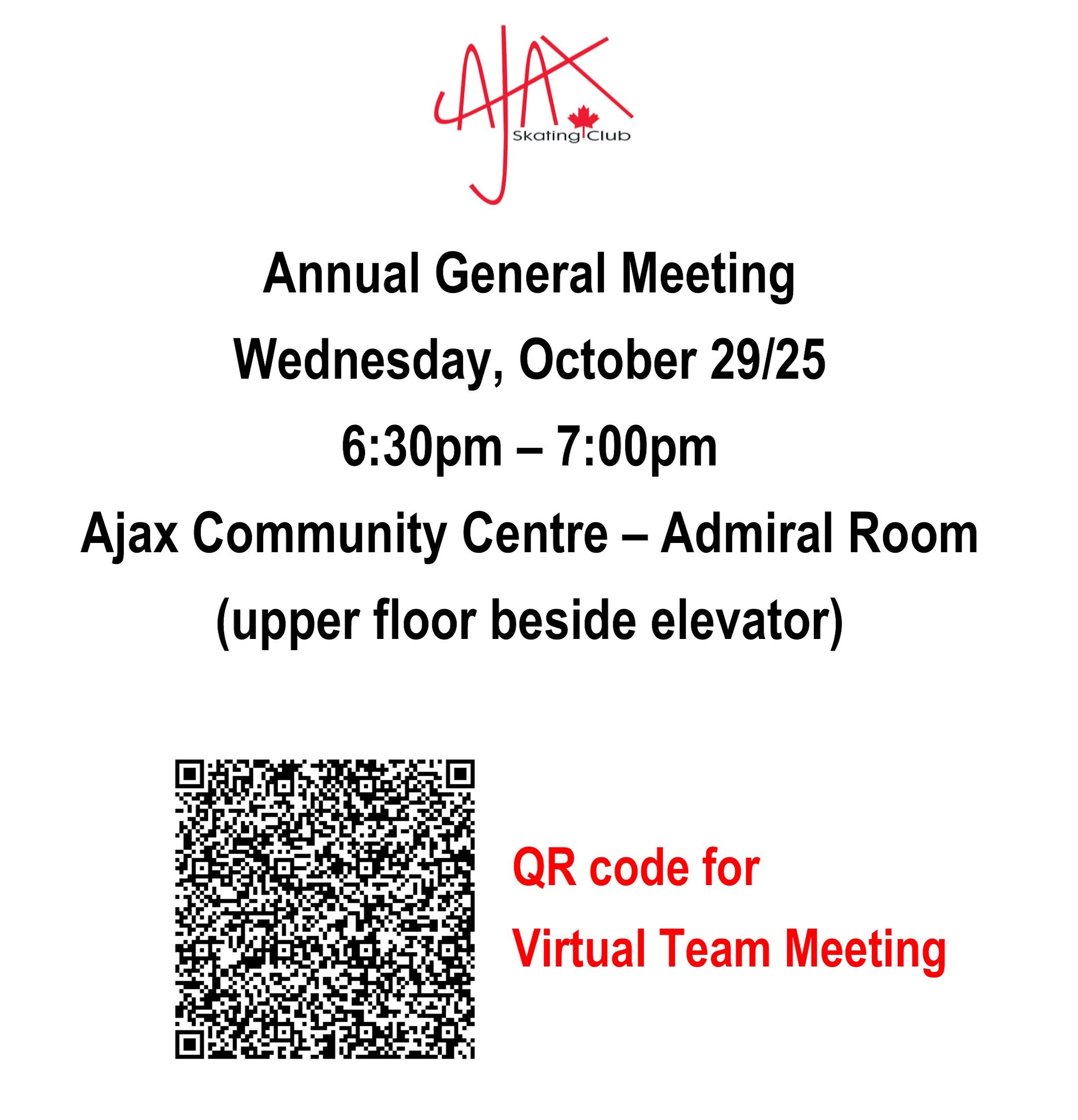 We are looking for President, Vice President, and 2 Directors. If you are interested in doing any of these positions for the 2025/2026 season please contact us at office@ajaxskatingclub.ca.